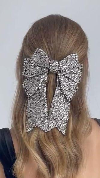- Маленькие блестящие банты гармонично смотрятся с брючным костюмом или платьем-комбинацией.