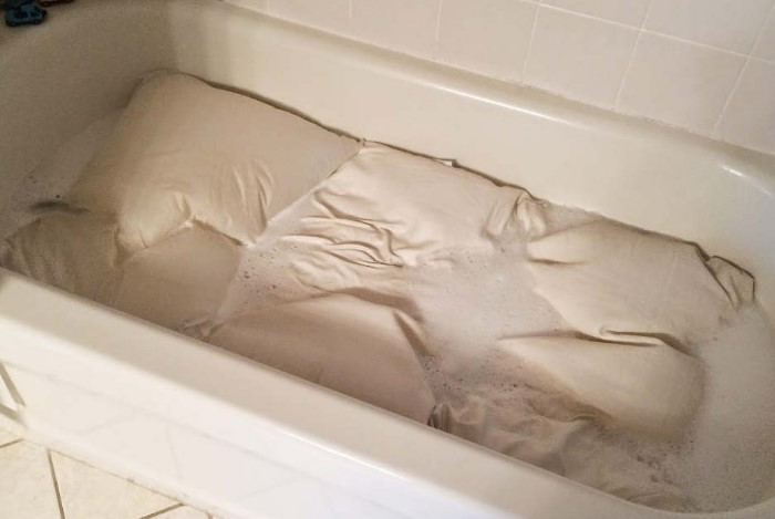 Если одеяло не помещается в стиральную машину, его можно постирать в ванной: