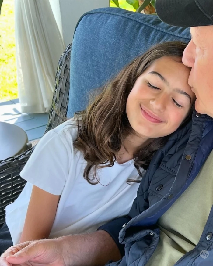 На другом снимке Уиллис выглядит довольно расслабленным, проводя время с младшей дочерью Эвелин. Оба одеты в домашние халаты, что придаёт кадру дополнительный уют.